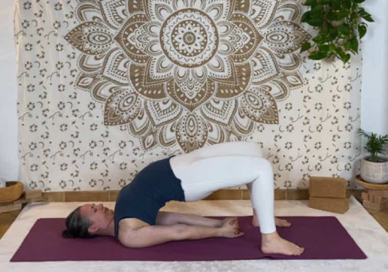 Le petit pont (setu bandha sarvangasana) : nous apprend à bien placer les pieds et actionner correctement les jambes et les fesses; à mettre en place l’extension du dos; actionner les omoplates; actionner les bandhas pour soutenir le dos